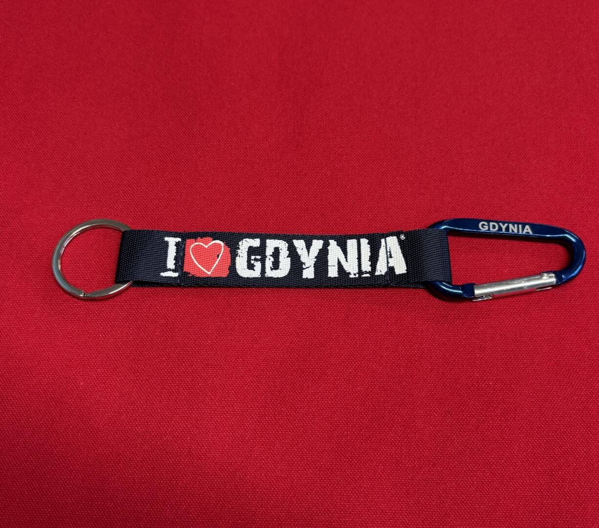 Brelok granatowy firmy ROBIN RUTH z napisem I LOVE GDYNIA.