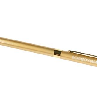 Elegancki, metalowy długopis w złotym kolorze z grawerem „100 GDYNIA”.