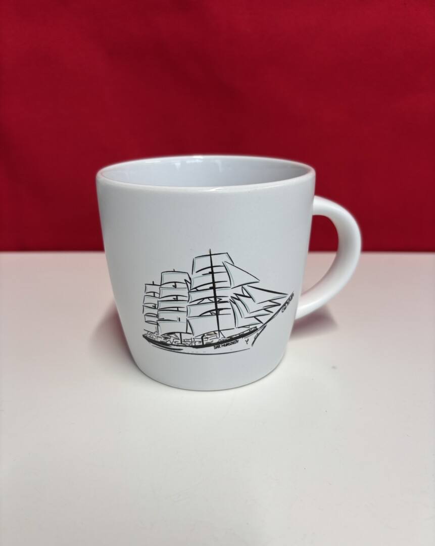 Stylowy kubek ceramiczny z nadrukiem żaglowca Dar Młodzieży.