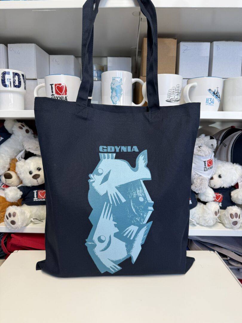 Ozdobiona nadrukiem grafiki Jana Rutki, przedstawiającej rybki z bulwaru, idealna na zakupy, plażę czy codzienne wyjścia.
