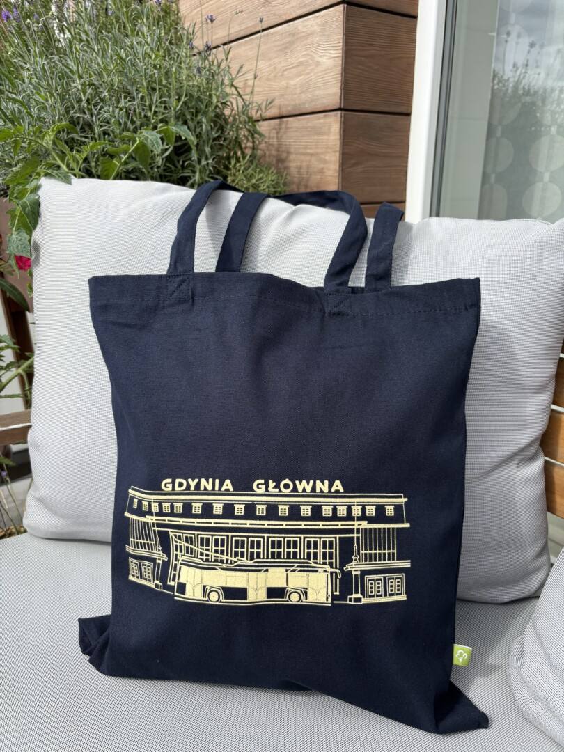 Torba z grubej bawełniany organicznej “GDYNIA GŁÓWNA ” w kolorze granatowym,